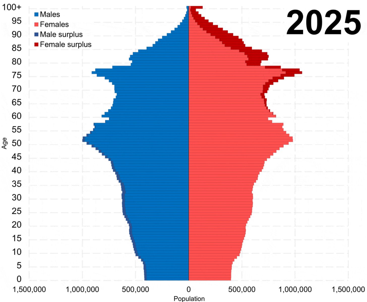 Immigration has stepped in to reduce the burden of a lower fertility rate (1.45 in Europe and 1.6 in the US). Although helping countries economically, immigration is degrading the historic cultures of former empires.