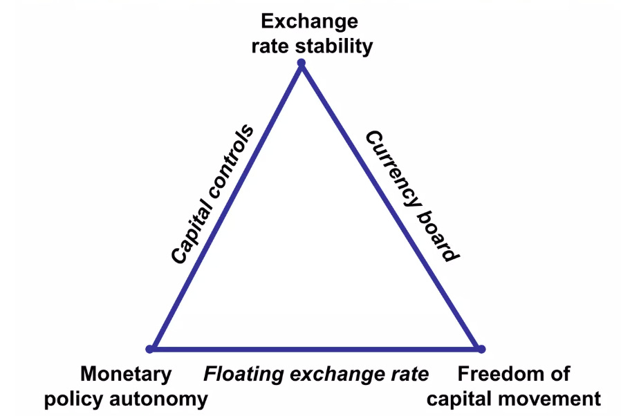 The graph and list above are the monetary trilemmas. An economy can achieve 2 of the three.
